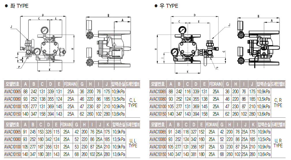 - 현장 배관에 따라 드레인밸브의 좌, 우Type 선택이 가능합니다.